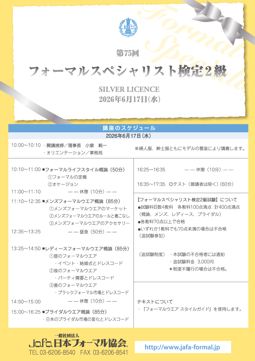 講義内容及び公式テキスト「フォーマルウエアスタイルガイド」から出題